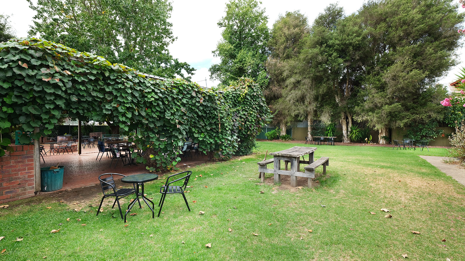 Walwa Hotel's spacious Beer Garden is the ideal setting to entertain friends and family, or for social groups to gather and socialise. With a large undercover area, featuring flat screen television, barbeque facilities and an open wood fire, spend a leisurly afternoon or evening enjoying the gardens and ambience if has to offer.